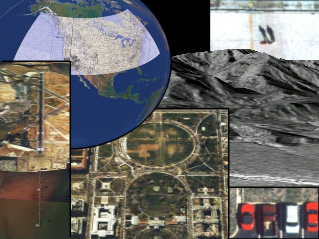 The top left image, shows the entire earth as rendered in GVP. Unlike