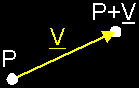 But how do we put this in our computer? Well, you already know that you use a place vector OP to store your point P: that place vector contains the coordinates of P. So, all you have to do is to replace P by its place vector OP. In that way, you really calculate the sum OP + V, which is a sum of 2 vectors and you already know how to do this. As result of this sum, you will get - suprise, suprise - a new vector. And that one is exactly the place vector of (P + V): it will contain the coordinates of the resulting point.