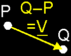 Definition: If you subtract one point P from another point Q, you get a free vector V as result: the one that fits between P and Q and with it sense from P to Q. So, Q – P = V.