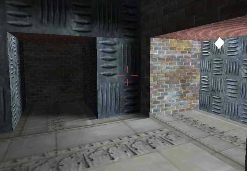 World with light-map lighting. The white rhombus type object (on the right hand side) represents a point light source.